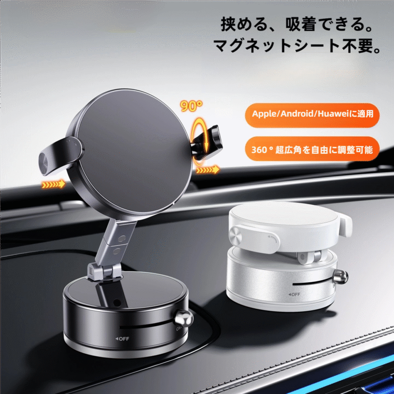 【落ちない】車載用マグネットスマホホルダー 360°回転+自由調整